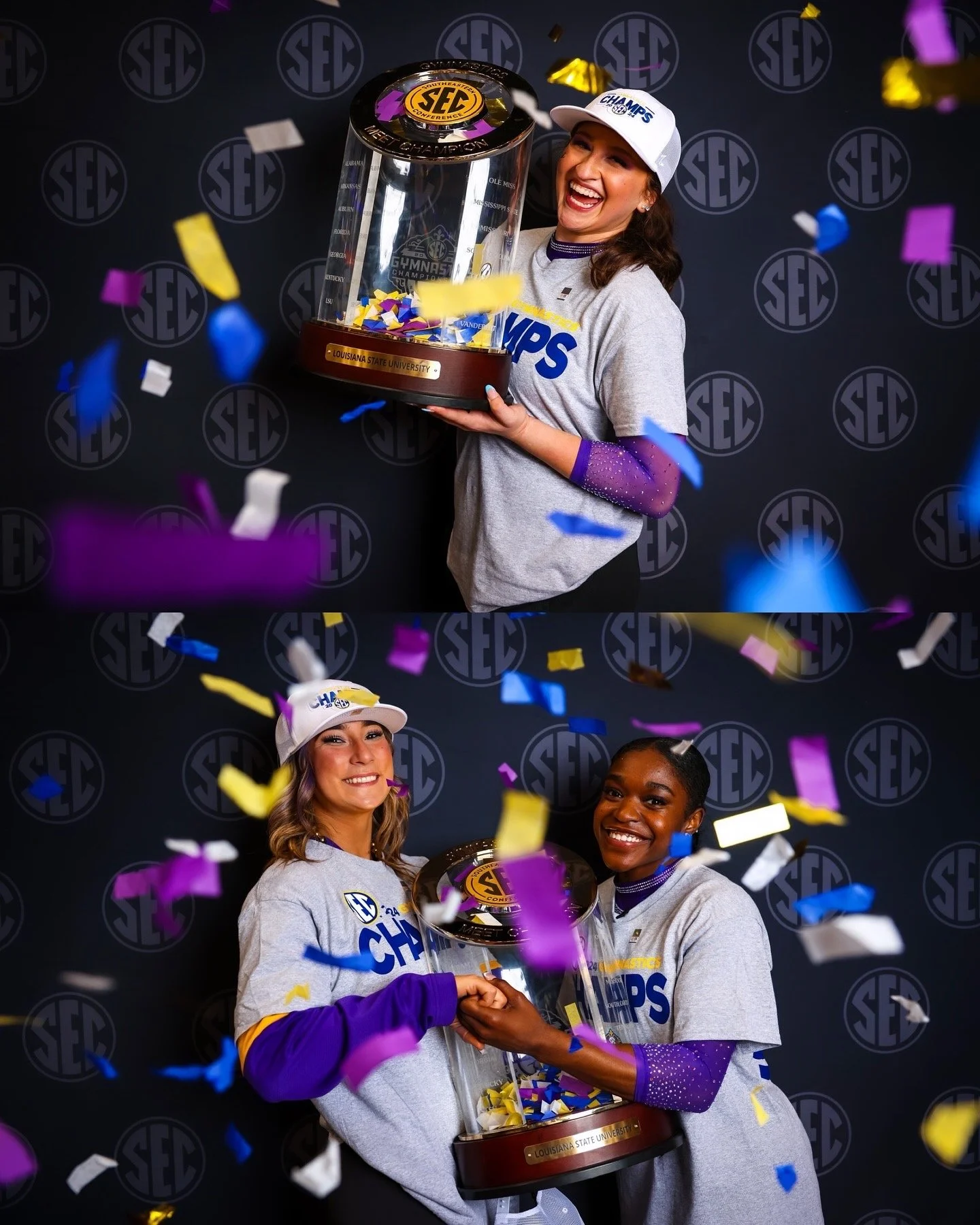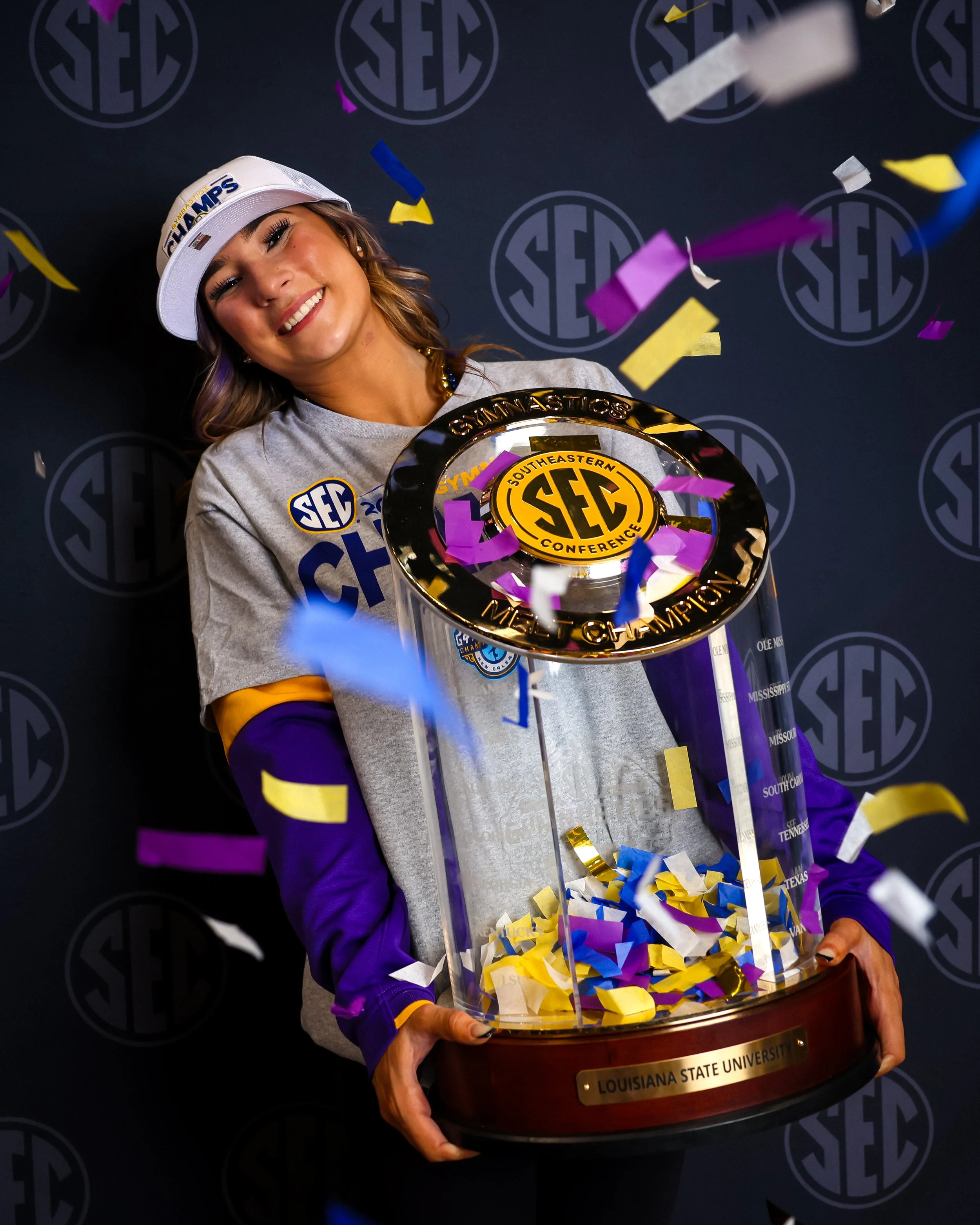 I worked with the SEC Social and Digital Media team to provide full coverage of the 2024 Gymnastics Championship. This included a photoshoot for all eight teams during their practice session, live in-meet photos for social media, Instagram stories, and a post-meet trophy photoshoot with the winning team. Photos were used on official @SEC Instagram, Twitter, Facebook and web pages.
